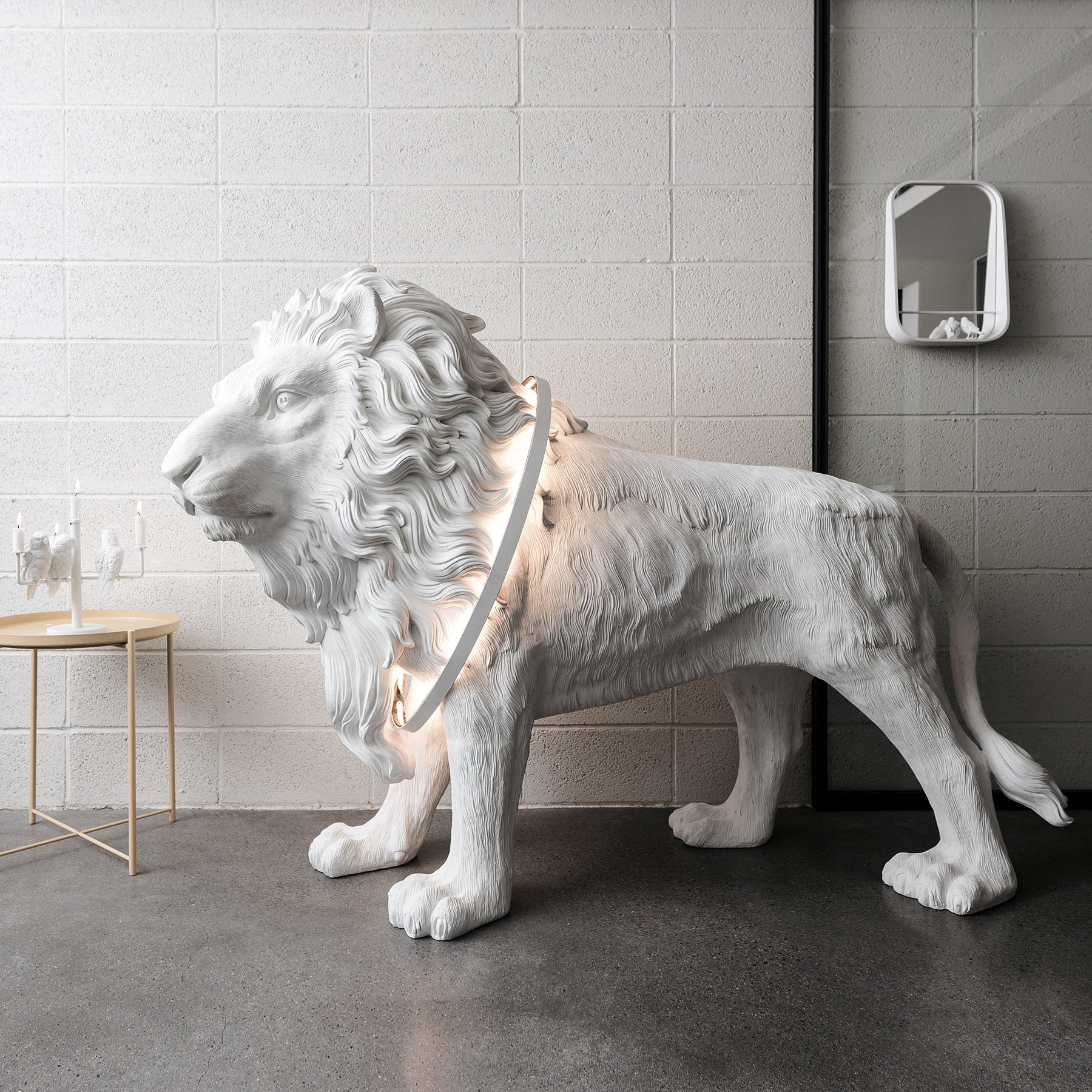 This Lion Lamp product offers a safe companionship and creativity to both daydreams and night silence. We need silence and peace at night. But we should be experience the same silence and peace during the day. This Lion Statue product offers you the purity and peace of nature in your living space with Lamp details. Daydreams are precious and provide a unique inspiration to see small stories of life. Life offers great stories. And at the beginning of these stories there is natural and artistic creativity. This Lion Statue product reflects the purity and peace of nature as a Lamp in white color. There is resin material in the design process of the product. Offering a functional detail as a Lion Lamp between natural and artistic creativity this artwork has a limited production. A daydreamlike white tones of haoshi Lion Lamp renders your home daily living fantastic! Imagining a white lion with LED collar, the wild and mighty king of grassland decorate your home with power. Lead him into your house, brush him carefully and buckle up the collar as symbols of relationship connection. Choose lion light to be the guardian of your kingdom. A real size scale Lion Statue Lamp guide your home with brightness and warmest welcome