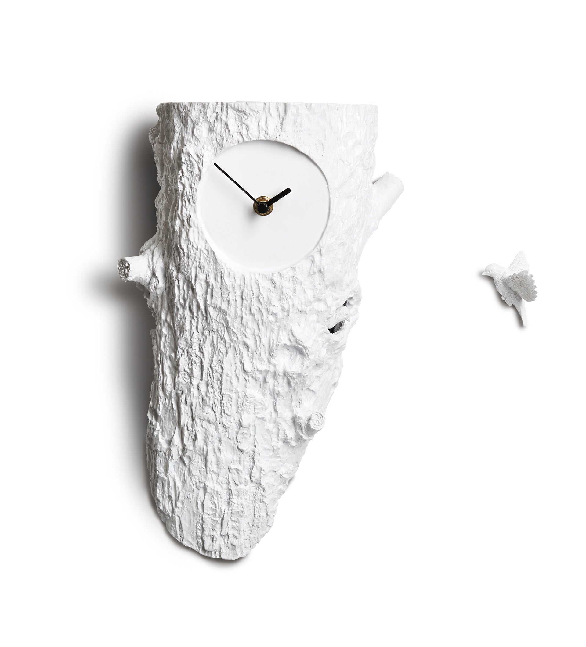 Time and clock are the most important unit that strengthens our perception of space and the world. Our perception of the world is shaped by time. We make all our plans in a time-oriented manner. We present this minimal and modern product which we designed using sculpture technique with Cuckoo Wall Clock concept. We wanted this watch to reflect the naturalness and purity of your life in peace. Thus, we brought in Cuckoo Wall Clock the two bird figures together using resin material and sculpture technique. We reflected the details of Cuckoo on a tree trunk with modern and contemporary details with the motivation of a minimalist sensitivity. We identify this tree trunk with the naturalness and purity of whiteness. Reflecting purity and time with minimal attention to your living space, this artwork features Cuckoo details. Time is the medium that connects you and me so that cuckoo. With every second ticking, we are gradually getting closer to each other. In only one hour, and we can finally love. We all like the surprise when the cuckoo clock strikes on each hour. In traditional models, cuckoo clocks have only one diligent bird to tell time, which in our opinion is a little lonely. The Cuckoo Wall Clock each hour, two birds will meet and chat with natural birdsong. Applying the simply sound setting to arrange the first birdsong start at 6:00 and the last time at 22:00 everyday. Which let you have a quiet night's sleep. The choice of white for Cuckoo Clock has a philosophical motivation and reason. The white color stands for naturalness and purity, thus emphasizing new beginnings. This product is unusual because it is designed with natural materials and special techniques of artistic creativity. In this sense, you will find a modern and contempoarary approach to the details of the Cuckoo Clock. The minimalist sensitivity and naturalness of the product gives the Modern Cuckoo Clock concept an extraordinary presence.
